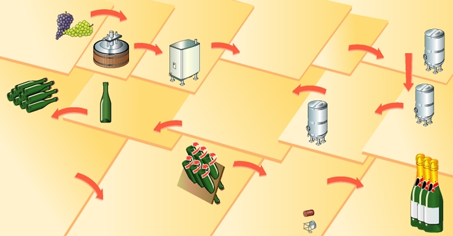 explorez les techniques et les étapes de création de ce vin renommé : le pressurage, la fermentation, l'assemblage et la comalisation du champagne.